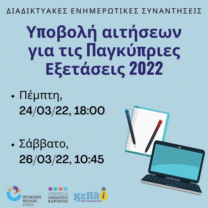 Νέες Ημερομηνίες – Διαδικτυακή ενημερωτική συνάντηση για την υποβολή αιτήσεων για τις Παγκύπριες Εξετάσεις 2022